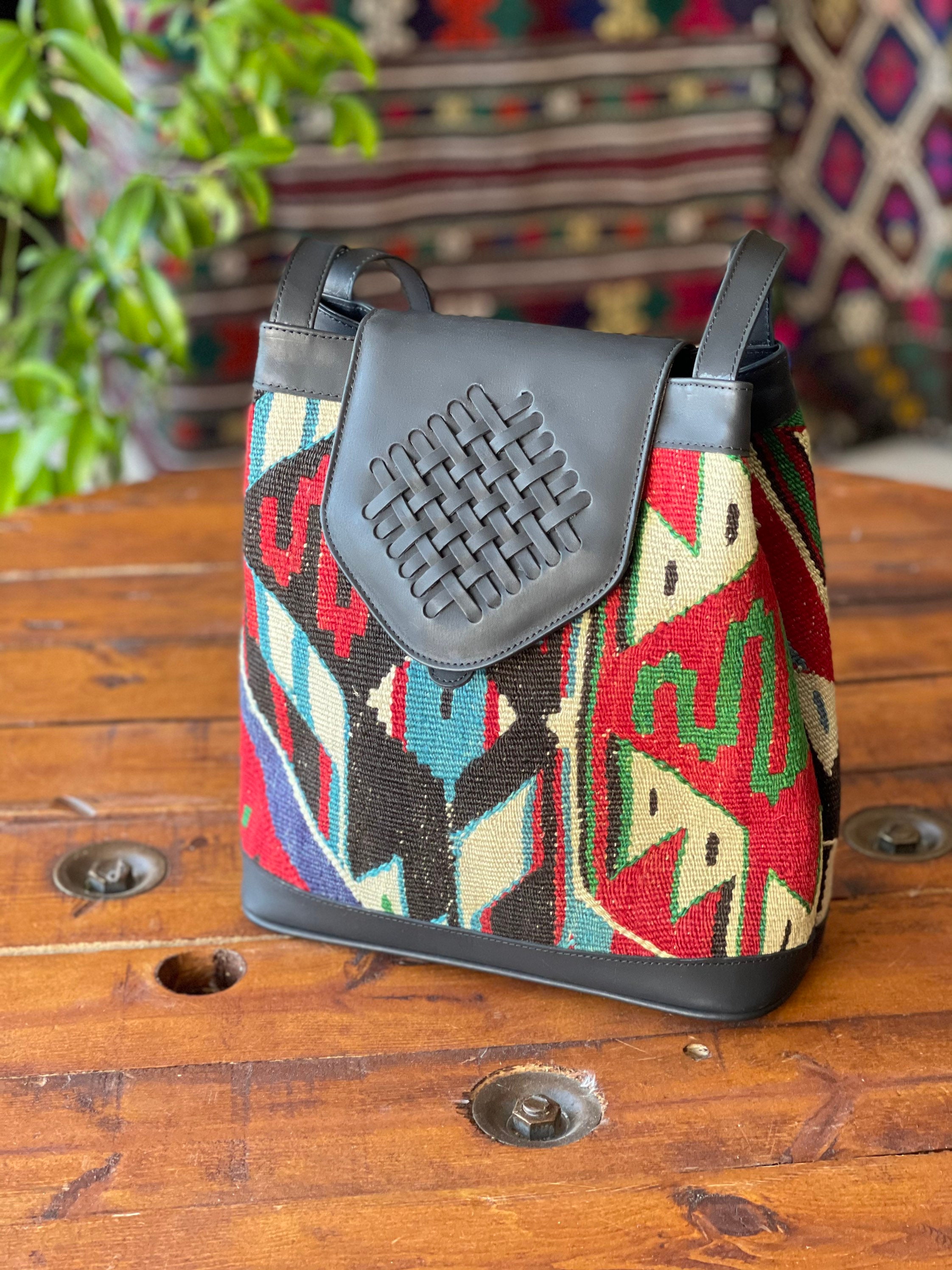 Kilim Bag Kilim Bags Kilim Bags What Is A Kilim Bag Turkish kilim bags offer a unique charm that sets them apart from other handmade bags. Beyond being just decorative pieces,. To begin with, bags made from leather and kilim are unlike most other bags in that they represent a window into the rich and colorful history of. Kilim is pileless textile that produced by one of several flat weaving technique.. What Is A Kilim Bag.