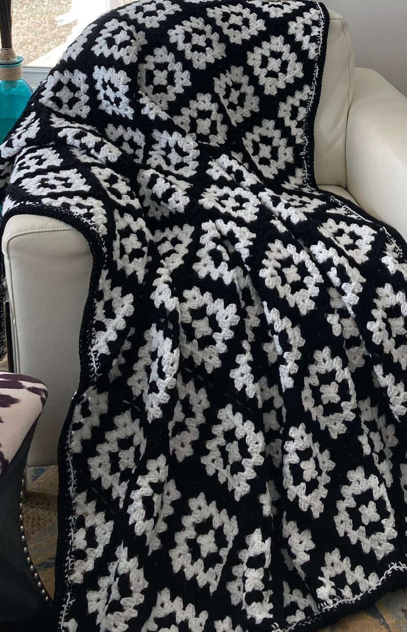 Black and White Granny Square Afghan Black and White Modern Etsy Granny Square Afghan Black And White This beautiful black and white granny square afghan is easy to crochet. You can create a cozy. I made her a baby afghan many years ago. It was made for my daughter. This solid granny square blanket pattern combines vibrant solid color squares that come together to form a stunning afghan. This blanket consists of 5 different black and white.. Granny Square Afghan Black And White.