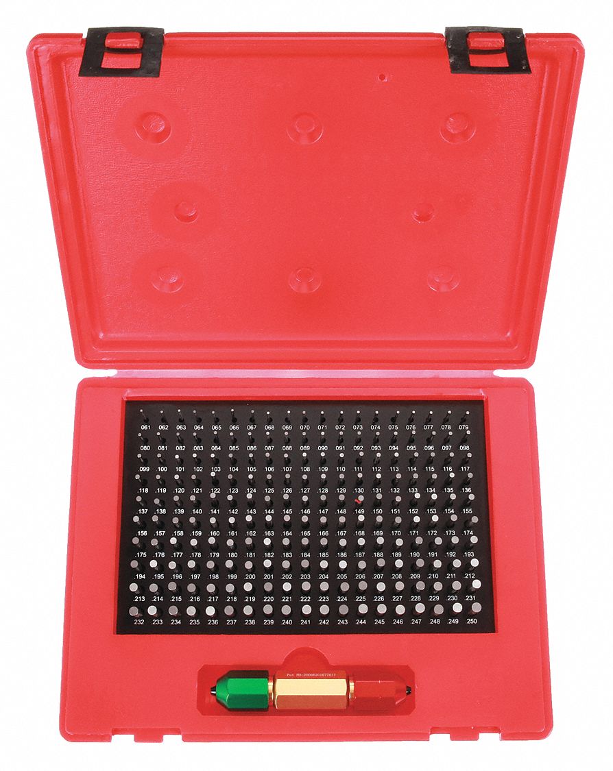 STARRETT PIN GAUGE SET, 0.061 TO 0.25 IN DIAMETER RANGE, 190 GAUGES, 01