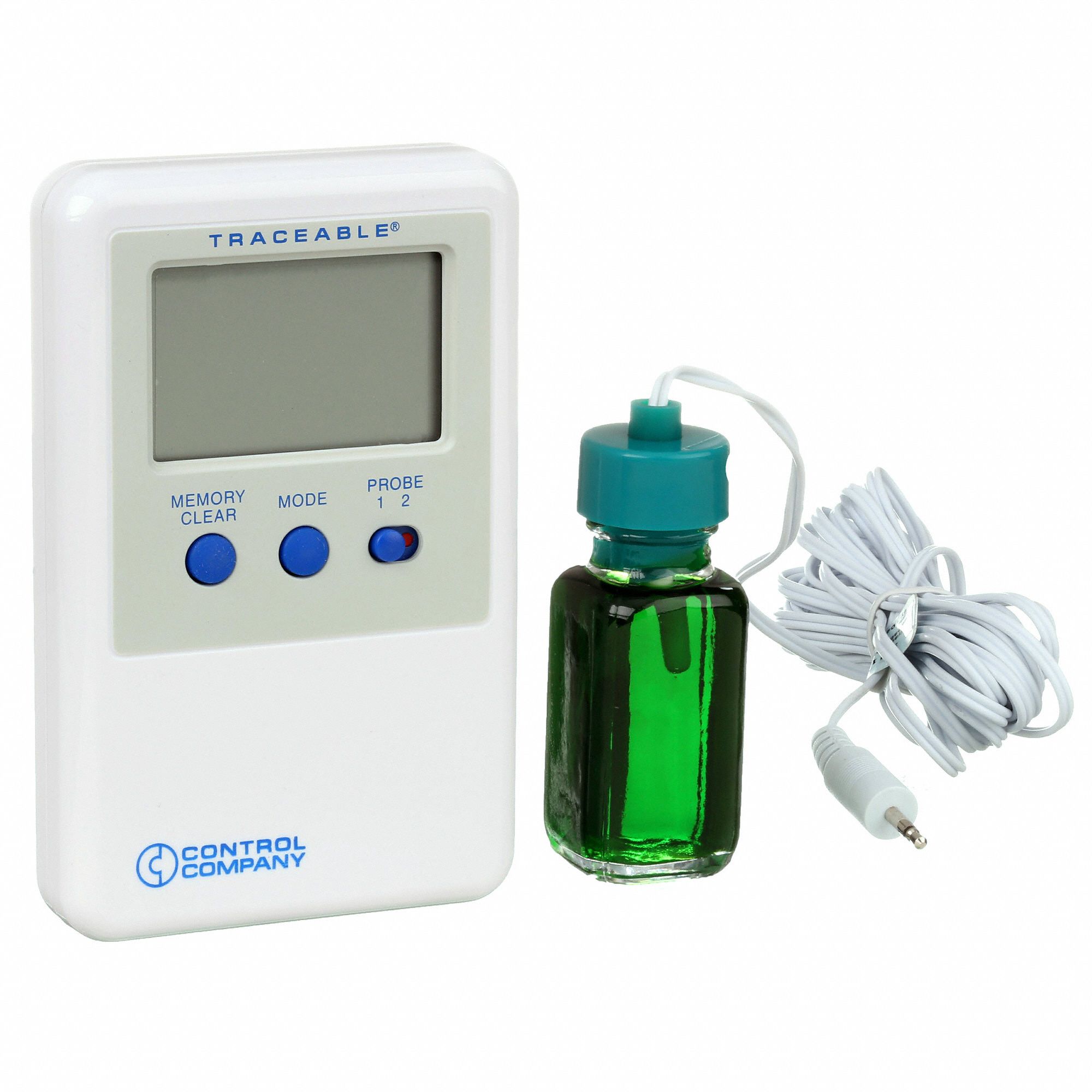 TRACEABLE Digital Thermometer, (1) Glycol Filled 10 mL Bottle Probe Thermometer Bottle Probe Reliably monitor and be alerted to any issues affecting the contents of your fridge or. Traceable fridge/freezer digital thermometer with bottle probe. Bottle insulates sensor from rapid temperature changes. Alarm sounds when temperature rises above or falls below set points,. Set high and low alarms in 1° increments; Thermometer reads ambient temperature or probe temperature. Thermometer Bottle Probe.