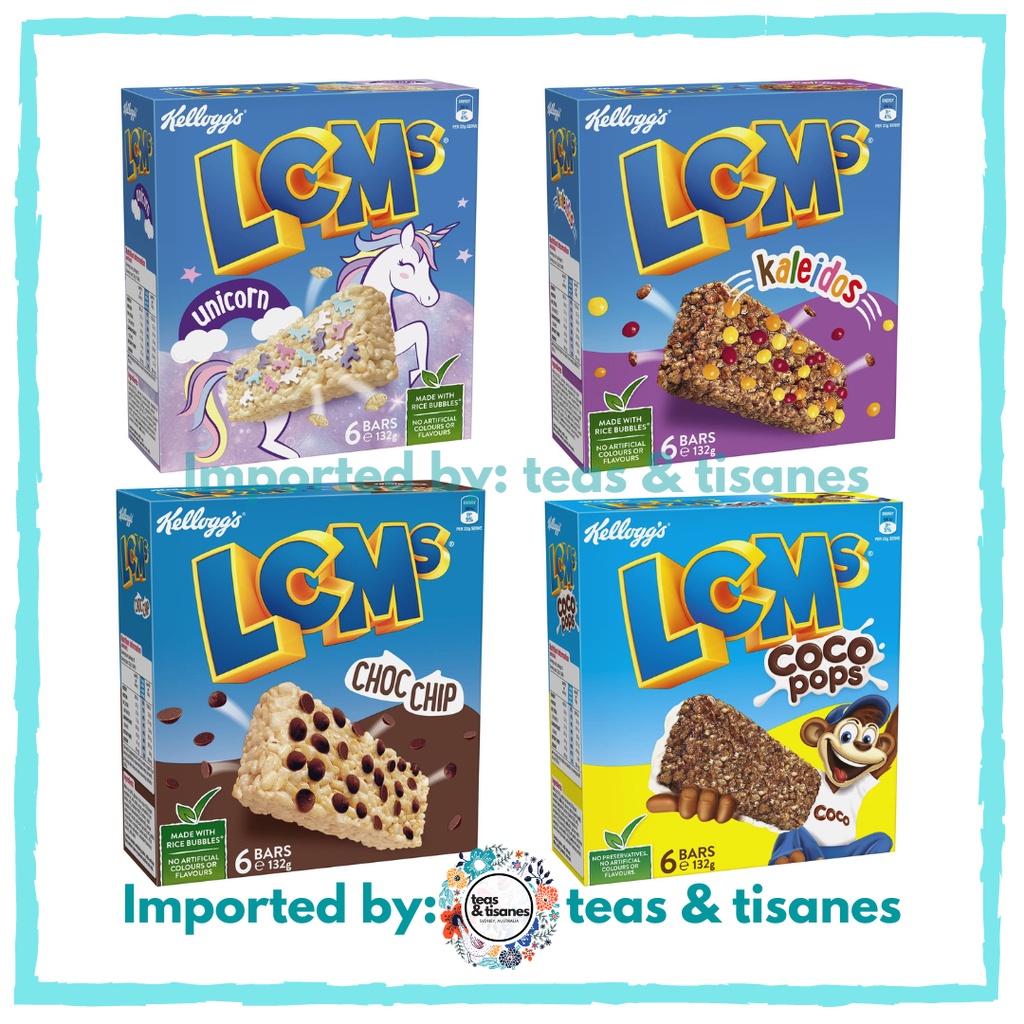 LCMs® Choc Chip Kellogg's Australia Choc Chip Lcm Bar Carbs 15g, fat 2.3g, protein 1g. In total, kellogg has 12 products branded with the name, including the lcms kaleidos made with delicious cocoa and candy. Kellogg's® lcms® 25% less sugar* snack bars are a delicious treat made with rice bubbles® and cocoa and topped with strawberry flavoured choc chips. 25% fat, 73% carbs, 3% prot. There are 86 calories. Choc Chip Lcm Bar.