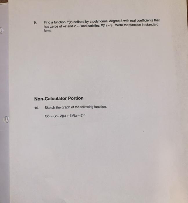 Solved 9. Find a function Plx) defined by a polynomial