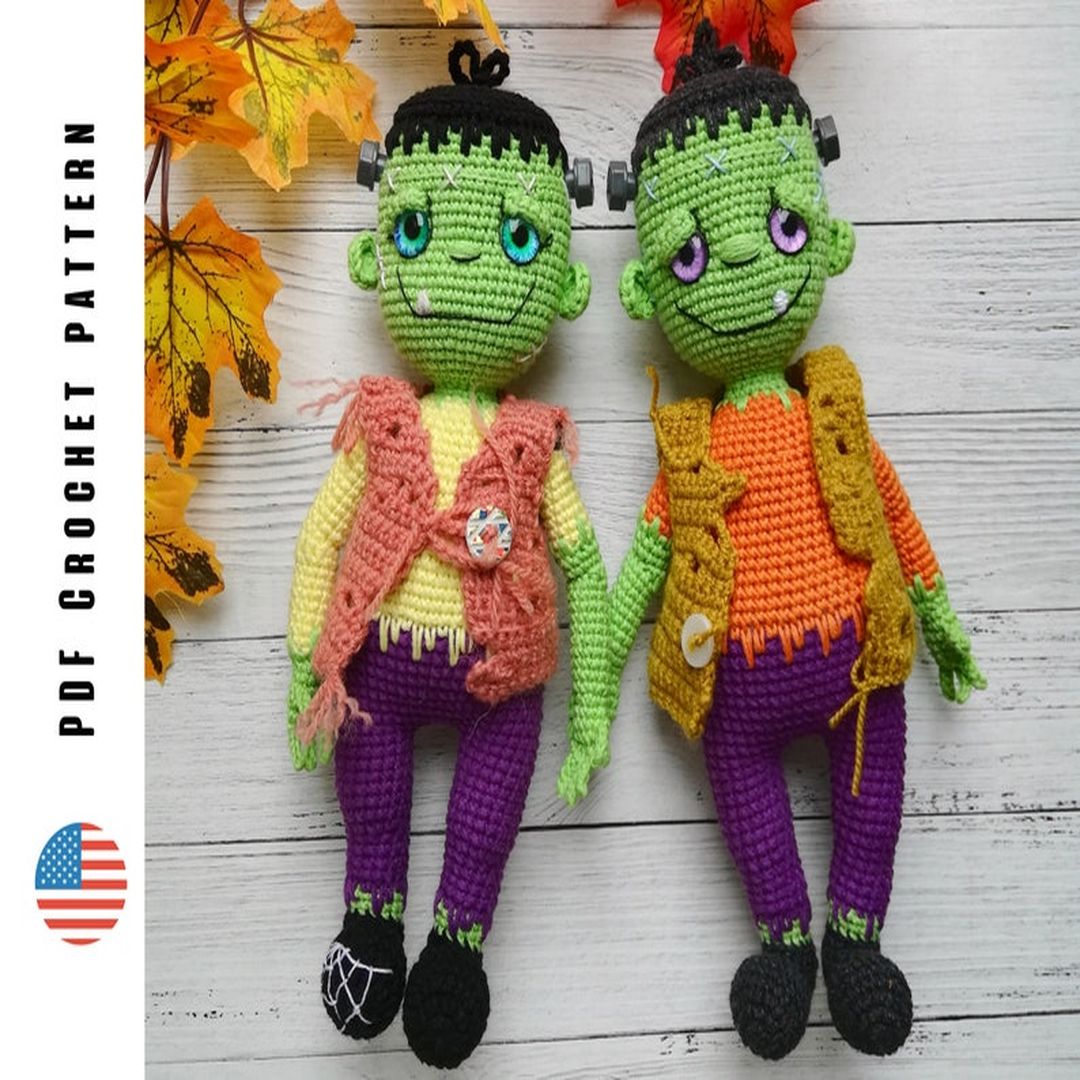 Crochet Halloween zombie doll pattern, amigurumi Frankenstei Inspire