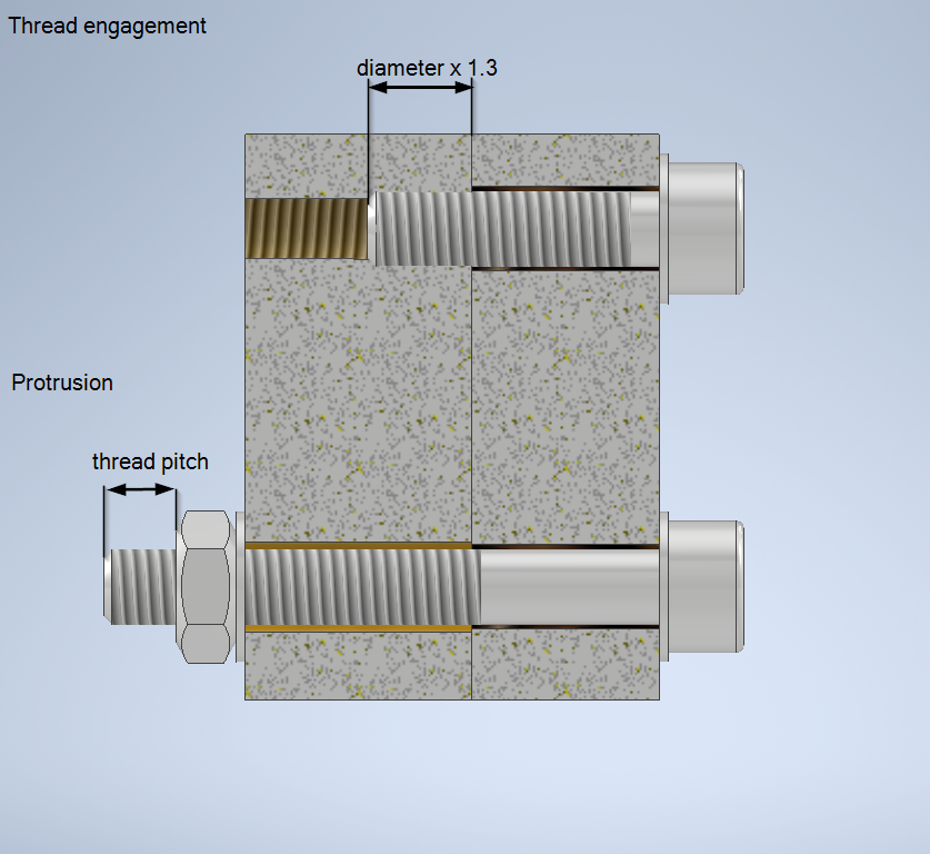 Minimum thread engagement and protrusion size in Inventor Bolted Connection