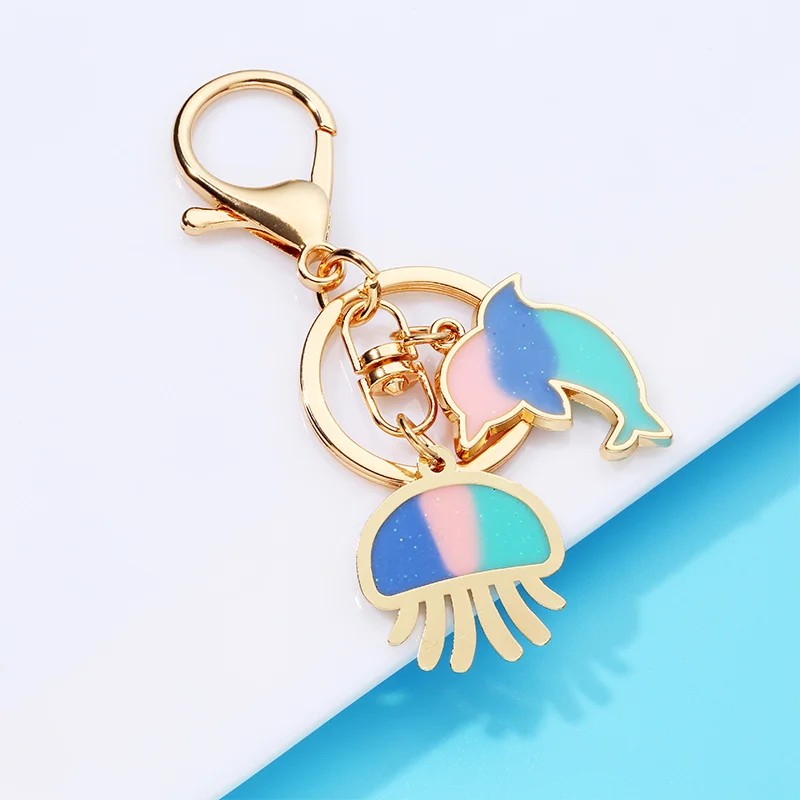 Popular Alloy Marine Animal Key Chain Jellyfish Fish Shell Pendant