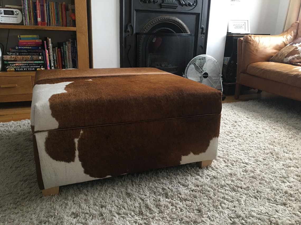 Cowhide Storage Ottoman 80 Cm X 80 Cm Etsy