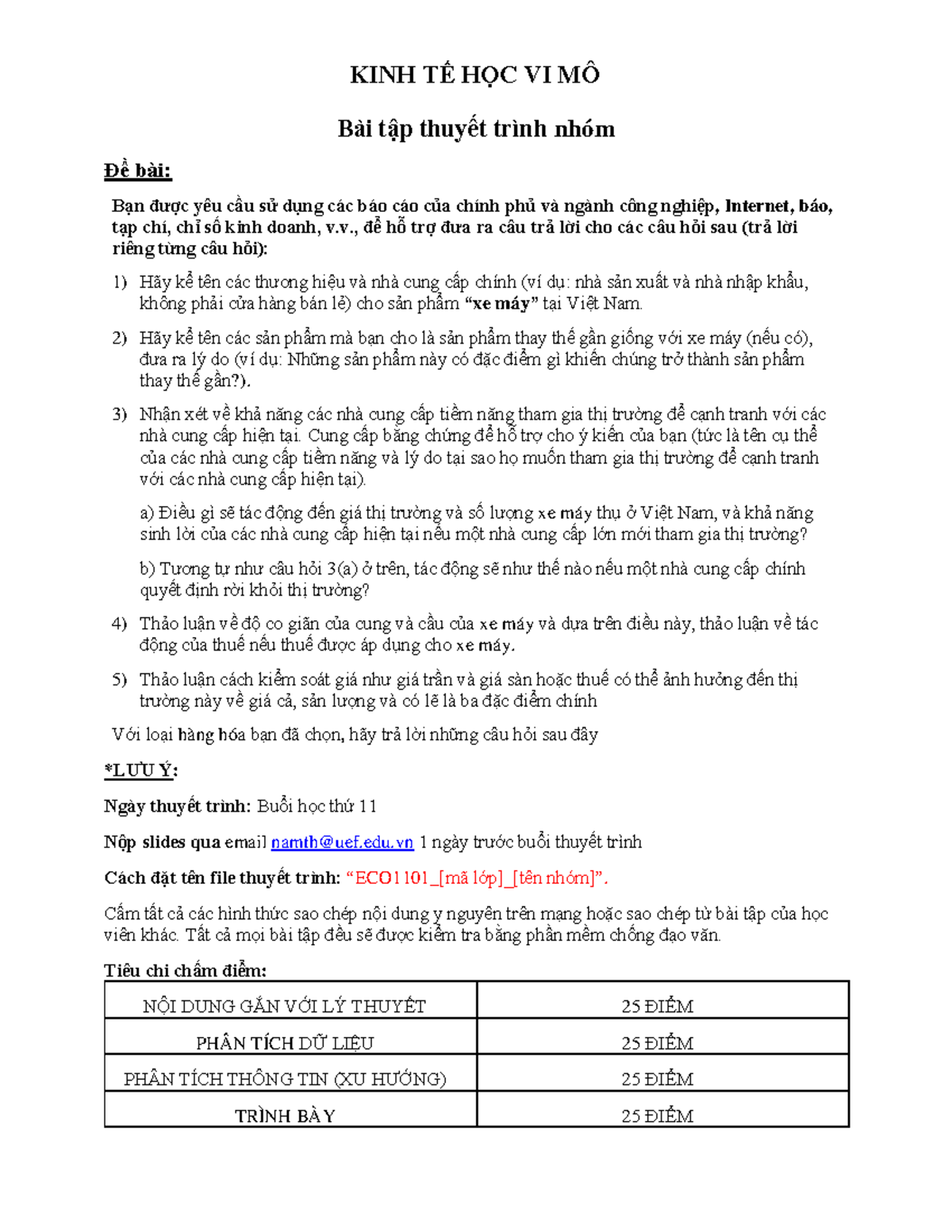 UEF Group Presentation Project Kinh Tế Vi Mô KINH TẾ HỌC VI MÔ Bài