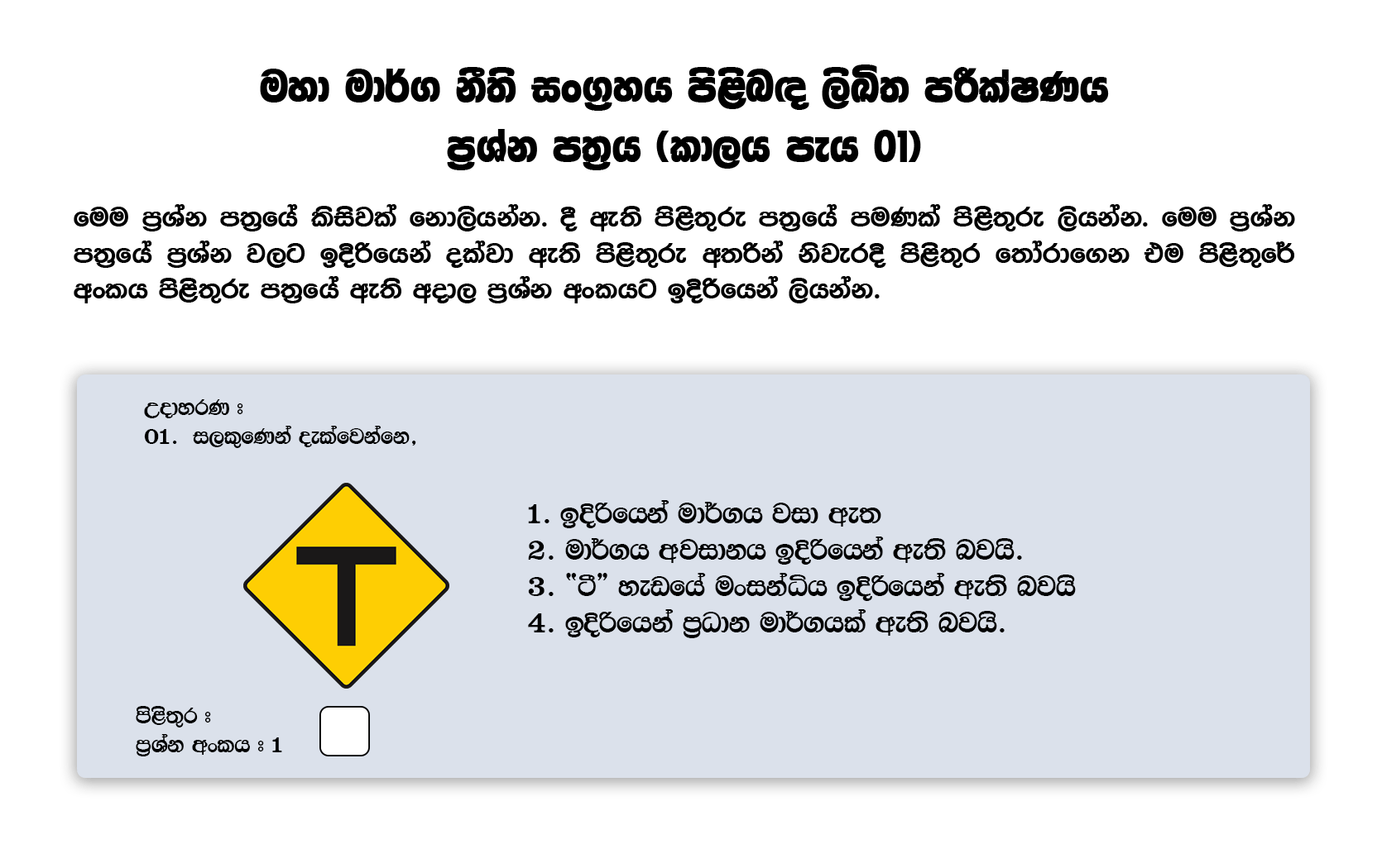 Paper No 02 (Sinhala) Dhamsara Driving School