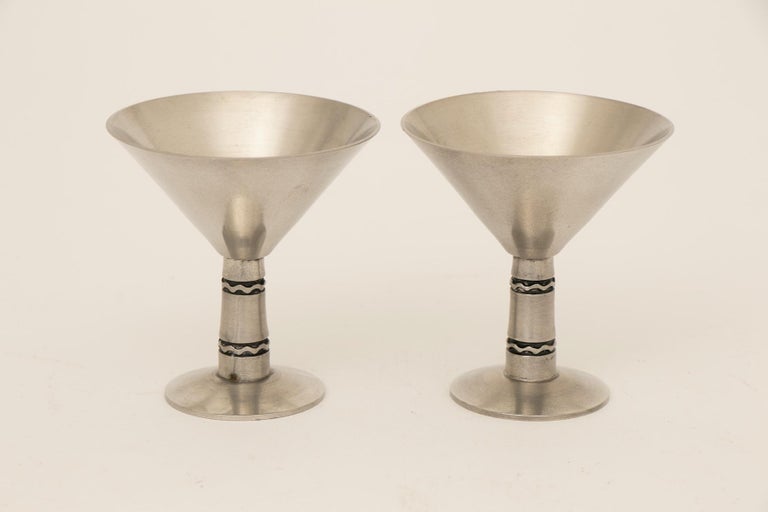 Midcentury Jensen Cocktail Shaker with Six Matched Cocktail