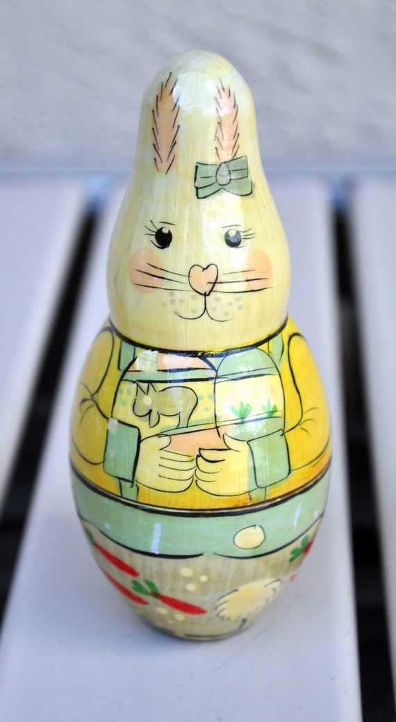 Vintage Wooden Easter Bunny Martyoshka Nesting Dolls