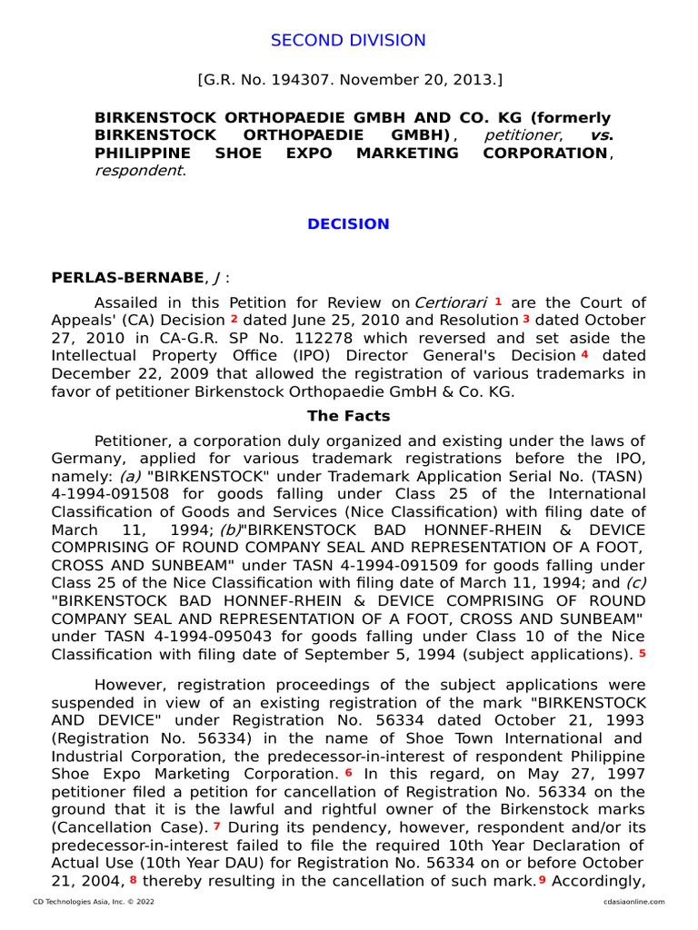 Birkenstock Orthopaedie GMBH and Co. KG V Philippine Shoe Expo