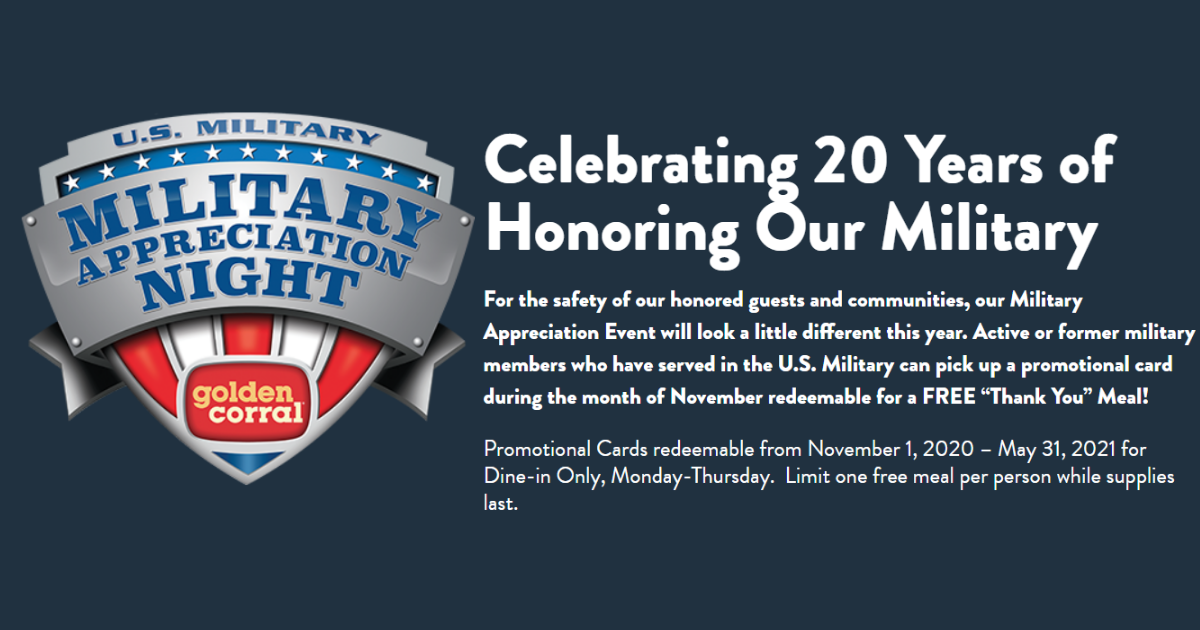 FREE “Thank You” Meal for Military Appreciation Night at Golden Corral