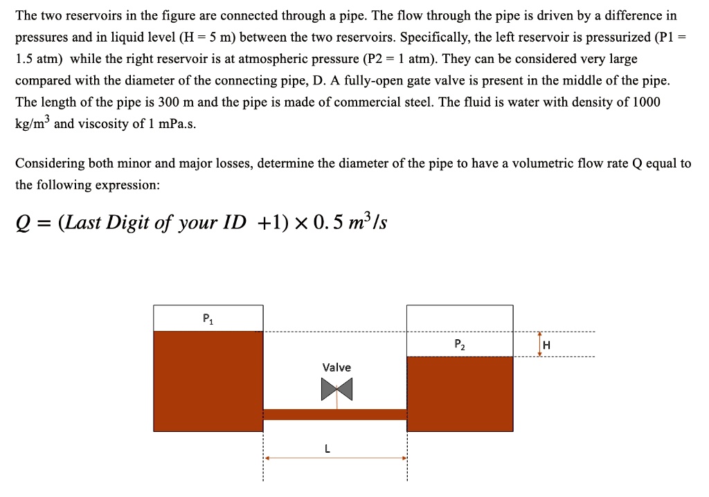 SOLVED The two reservoirs in the figure are connected through a pipe
