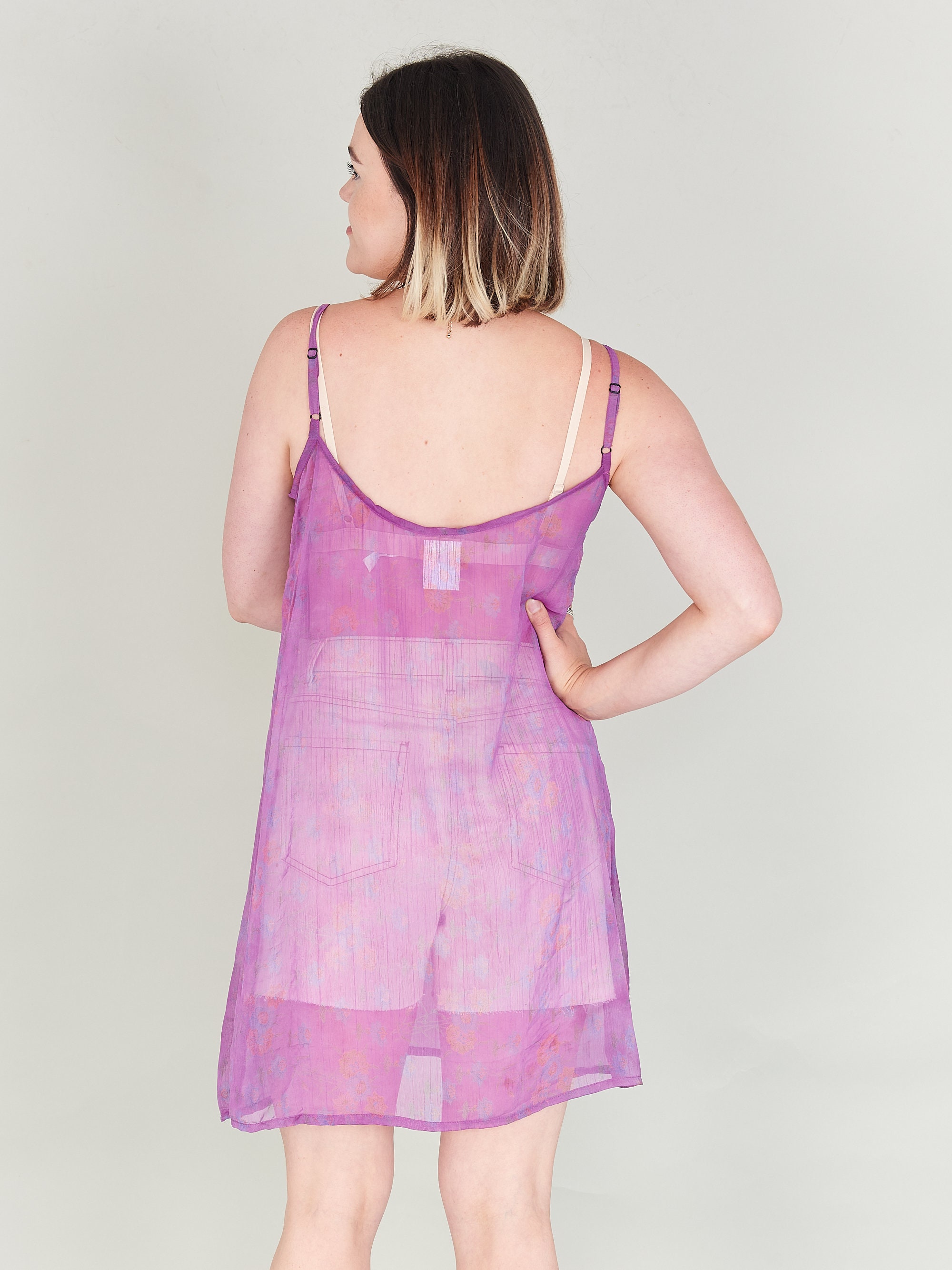 Purple slip dress sheer chiffon fabric adjustable straps Etsy
