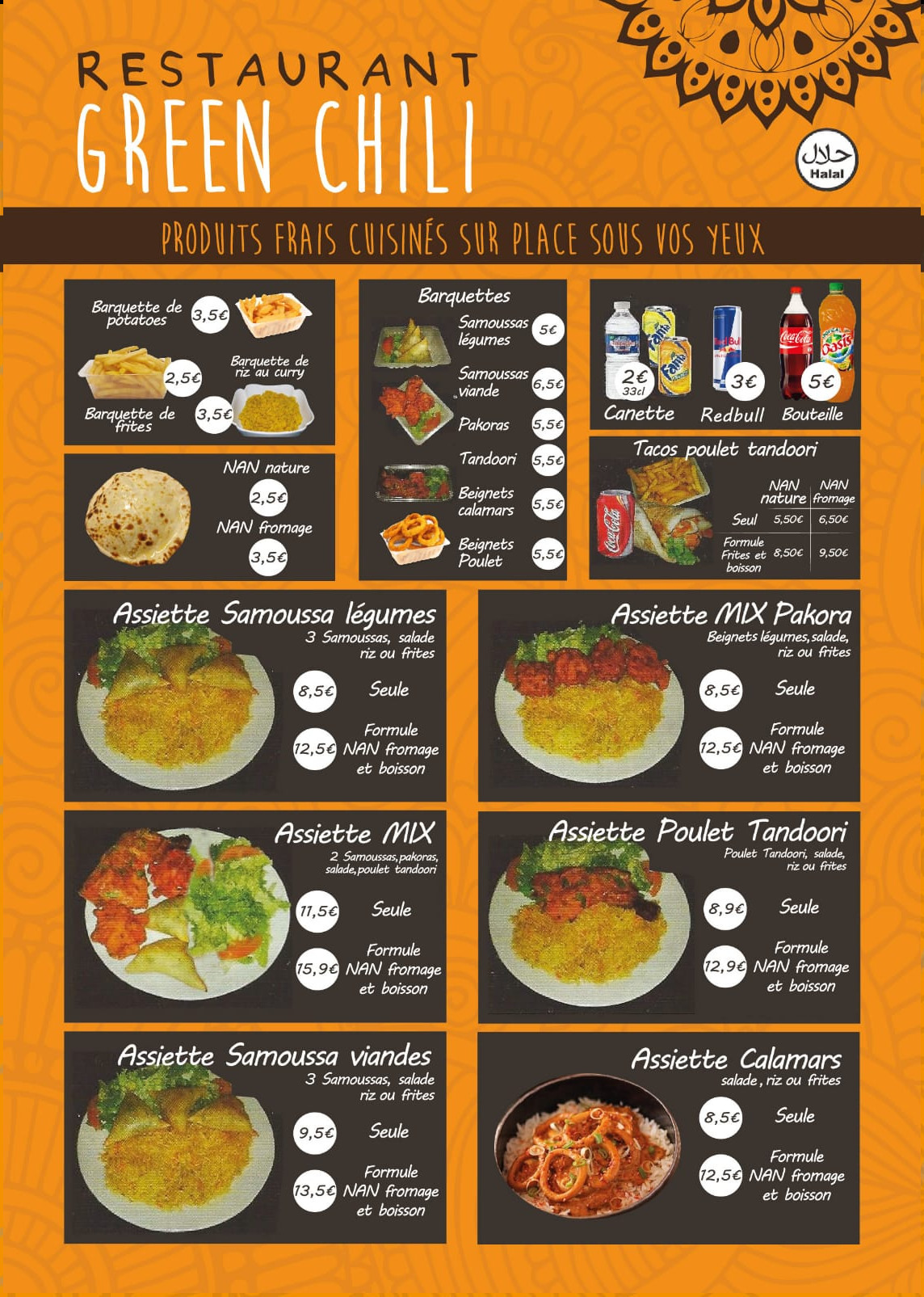 Carte de Green Chili, Restaurant, spécialités indiennes et