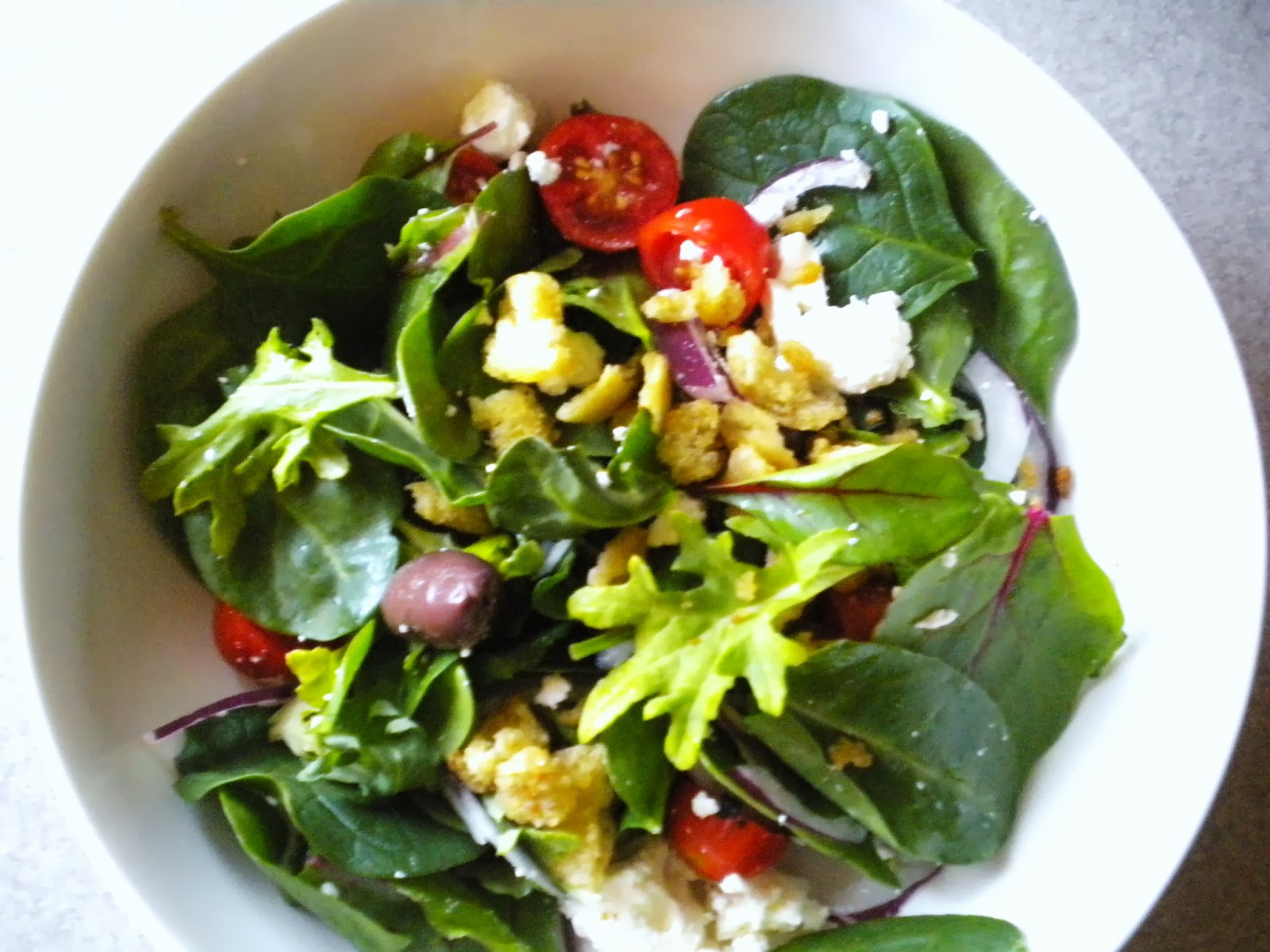 In My Kitchen Baby Greens Greek Salad with Anchovy Crumbs