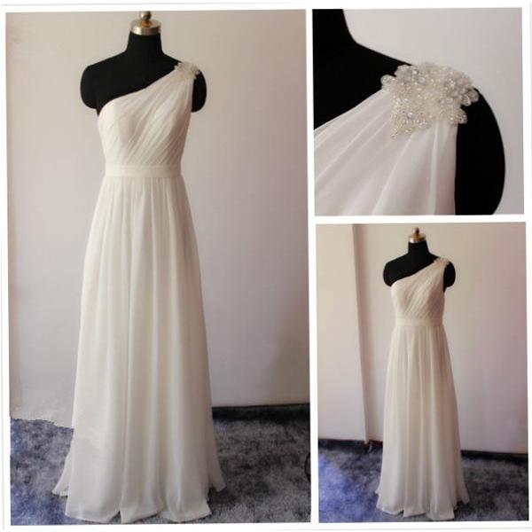 Long Bridesmaid Dress, White Bridesmaid Dress, Cheap Bridesmaid Dress