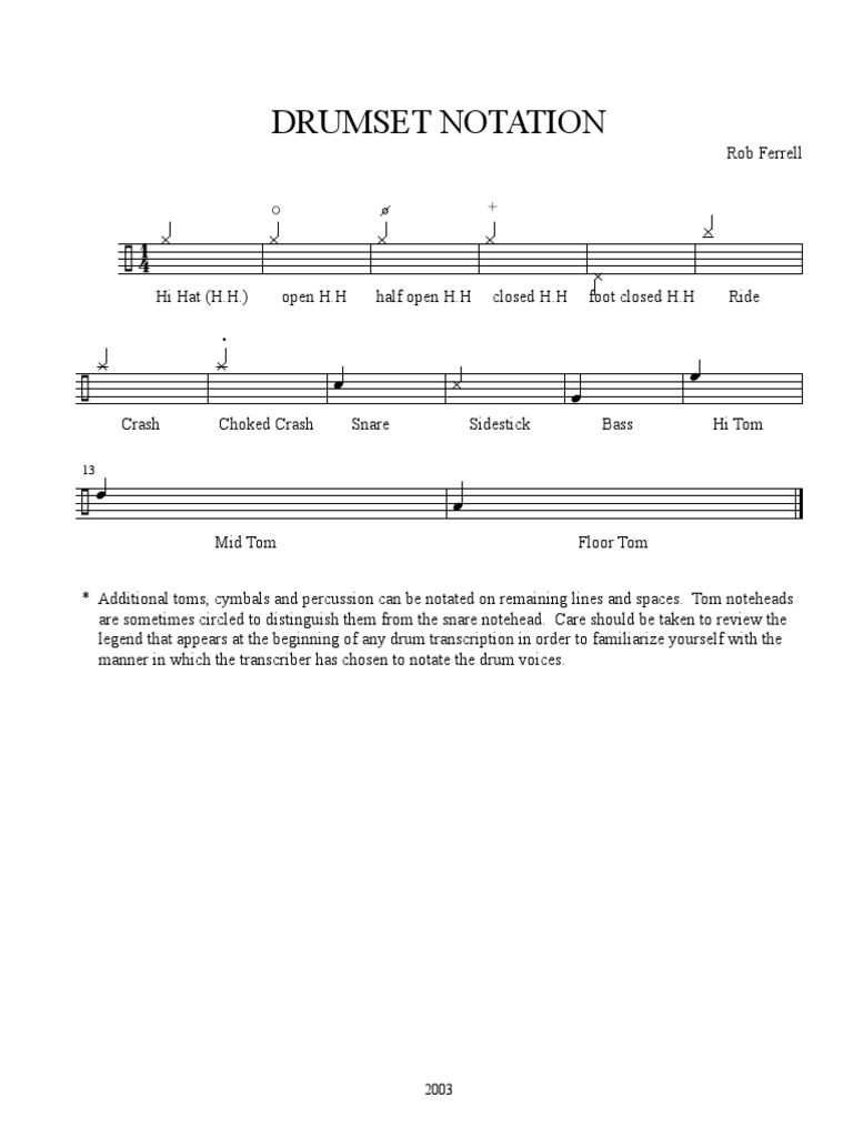 Drum Set Notation PDF