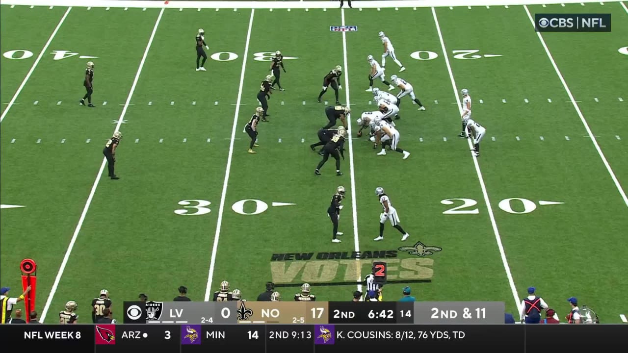 Las Vegas Raiders wide receiver Davante Adams' incredible toedrag catch ruled out of bounds