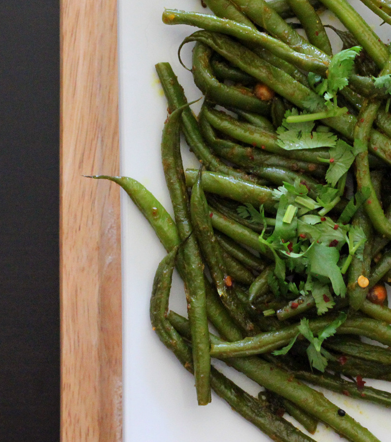 Green Beans with fennel seed, lentils and cilantro. Barbati Sabji vegan