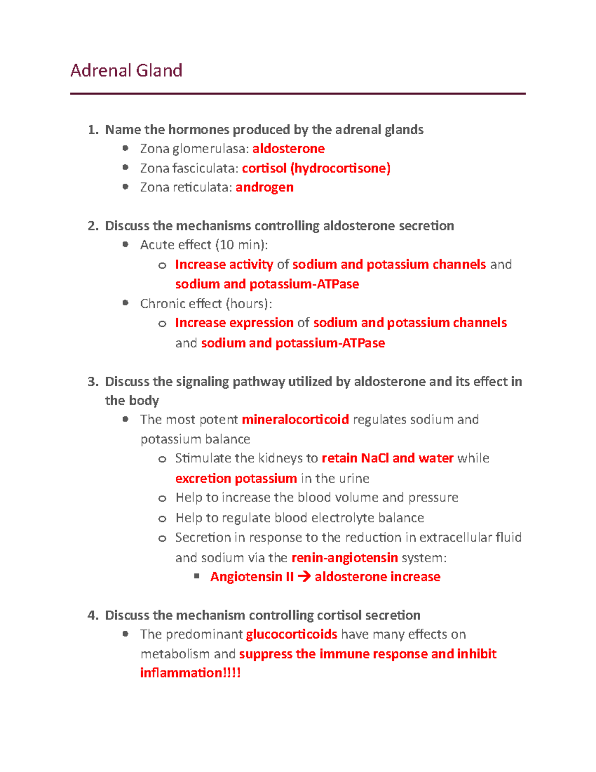 Adrenal Gland Adrenal Gland Name the hormones produced by the adrenal