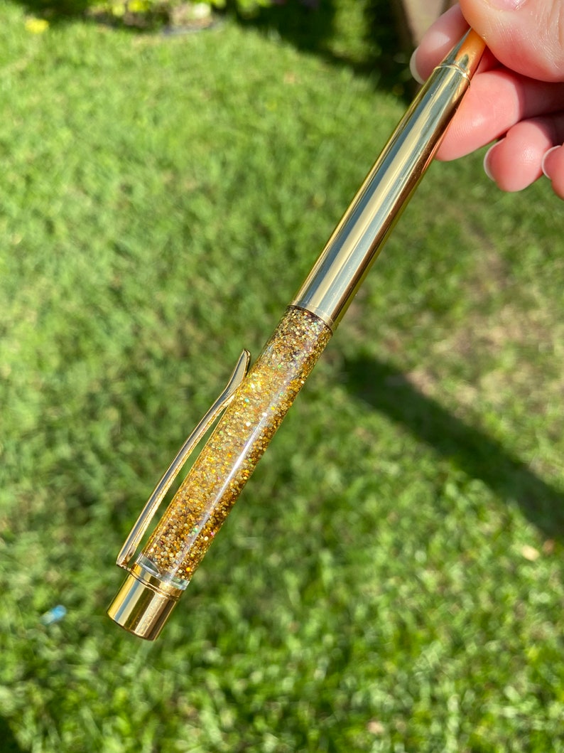 Chunky Gold Glitter Mix Ballpoint Pen Personalized Resin Etsy Best Gold Pen For Resin In this guide, we’ll share the top paint pens available for resin and what makes them stand out. These paint pens are the best overall markers for resin art. We’ll help you find the perfect gold for mixing and accents. Our resin edges metallic paint pens were designed to create the perfect finish for resin art. In this article, we’ll. Best Gold Pen For Resin.
