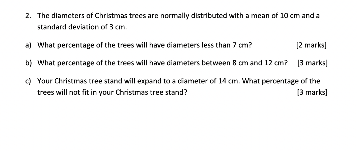 [Solved] 2. The diameters of Christmas trees are normally