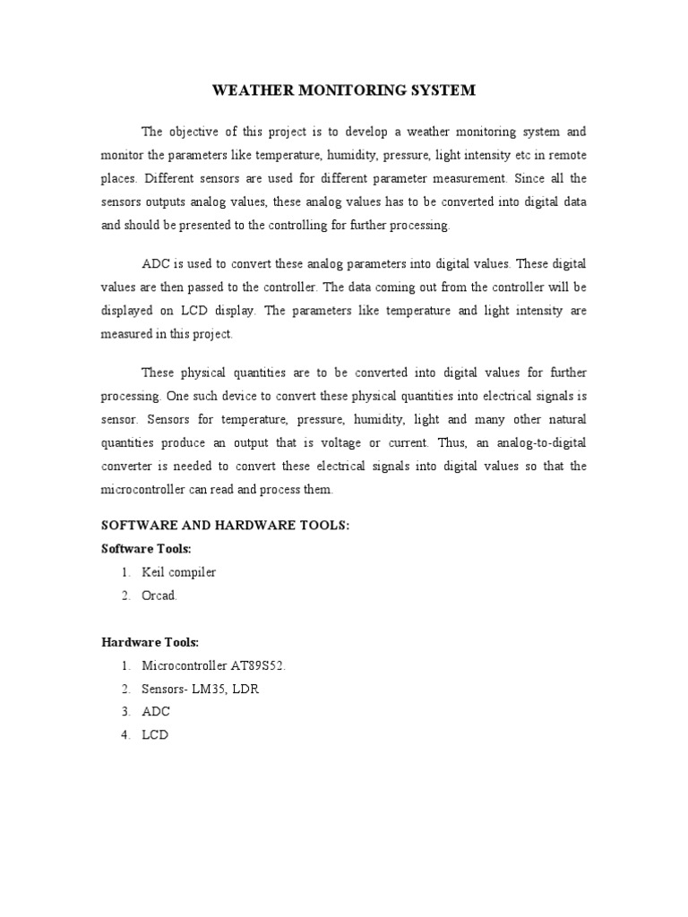 Weather Monitoring System PDF Weather Monitoring System Project Pdf this paper reviews the existing weather monitoring system using iot and its components, such as sensors, micro. practical weather monitoring system for small regions becomes apparent. The proposed research aims to address this gap by. in this project, a straightforward weather monitoring system that can track a location's temperature and humidity is created. weather monitoring system. Weather Monitoring System Project Pdf.