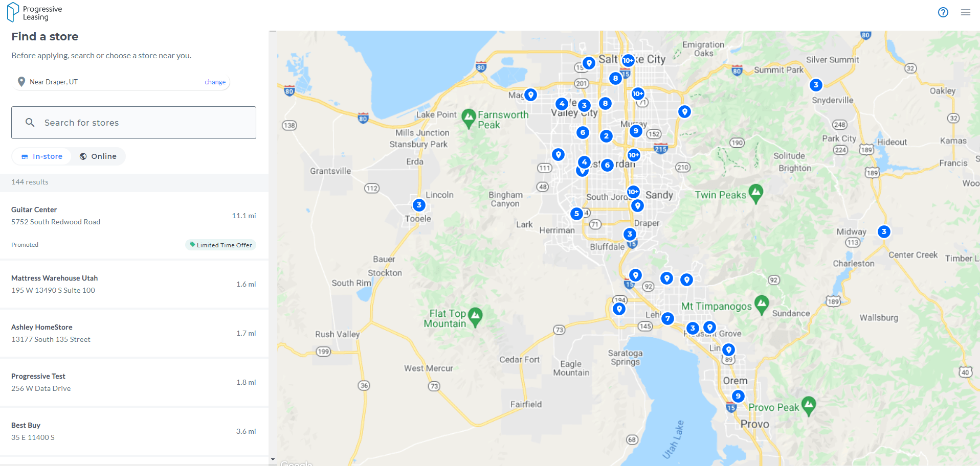 Where can I find a retailer that offers Progressive Leasing
