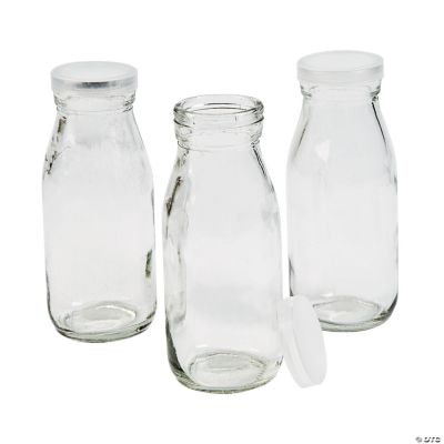 Clear Glass Milk Bottles with Lids 12 Pc. Oriental Trading