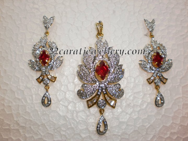 Light Weight Cz Pendants with Earrings Jewellery Designs