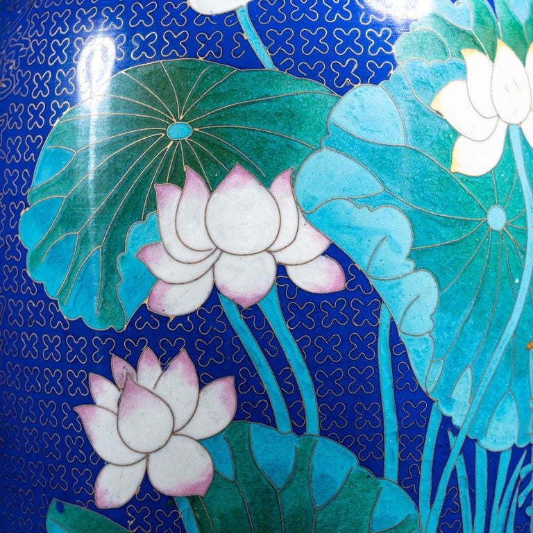 Genuine Cloisonne Vase with Custom Wooden Stand For Sale at 1stDibs