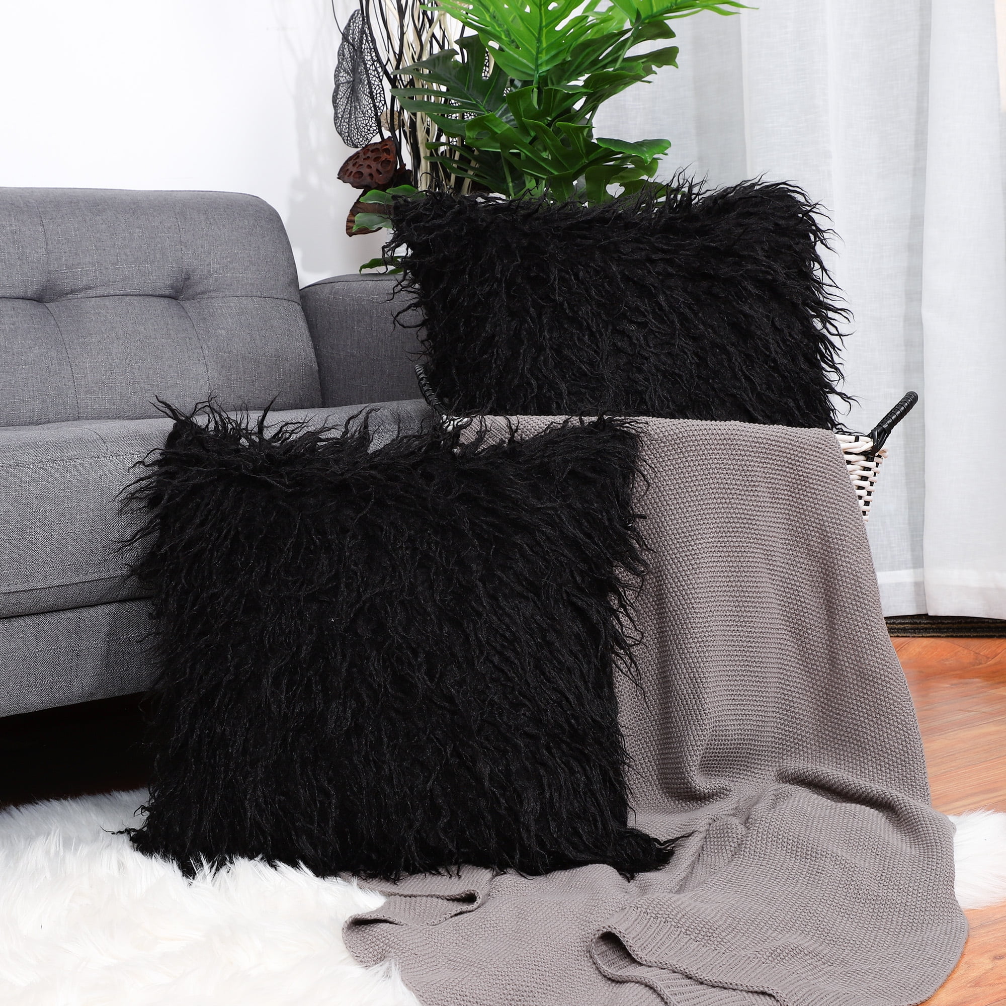 Unique Bargains Pack of 2 Shaggy Faux Fur, Soft Plush Square Pure color Cushion Cover,18" x 18