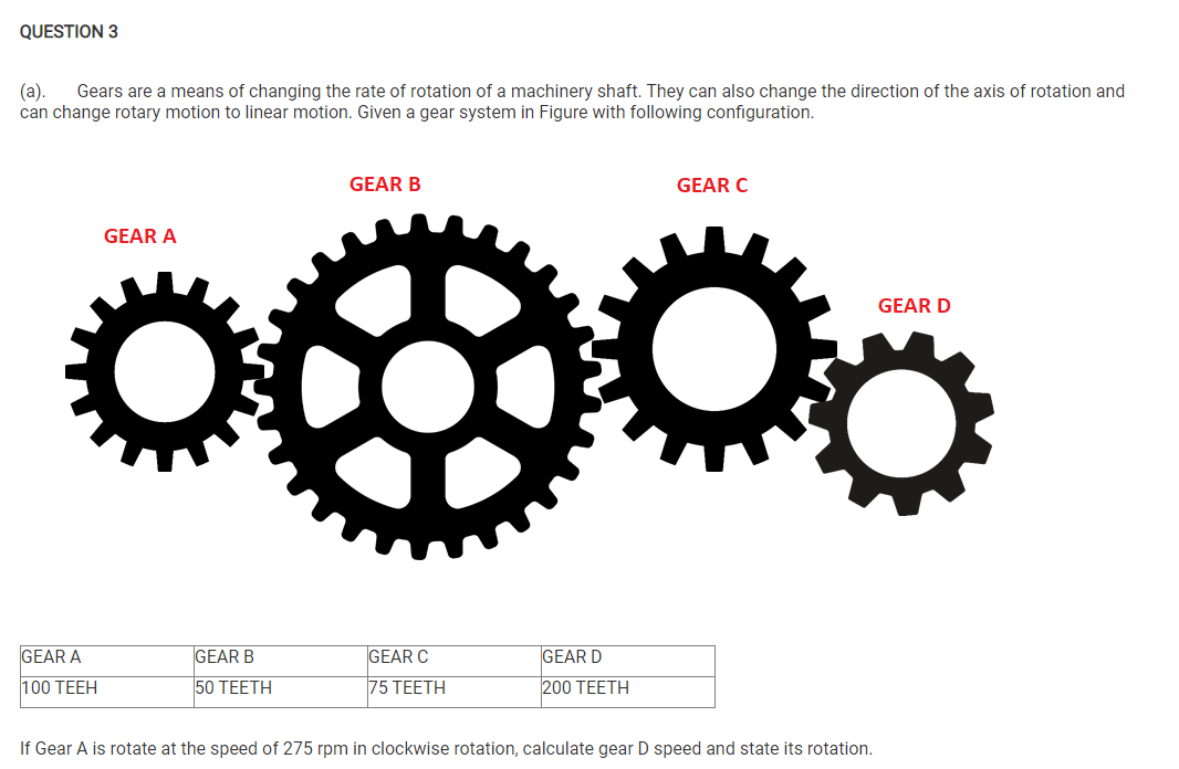 Solved QUESTION 3 (a). Gears are a means of changing the