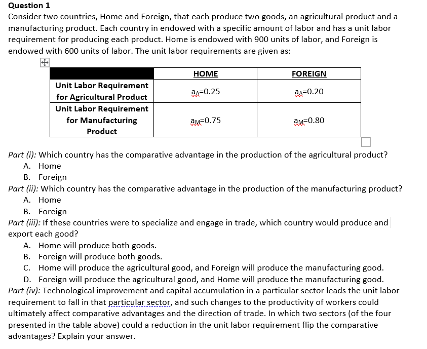 Solved Question 1 Consider two countries, Home and Foreign,