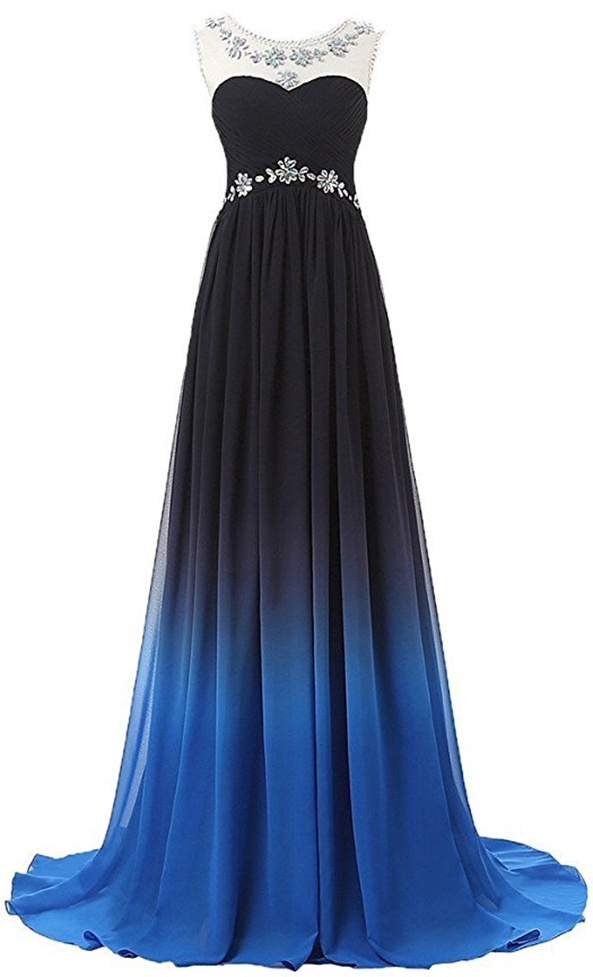 Gradient Color Prom Evening Dress Beaded Ball Gown Prom Dresses on Luulla