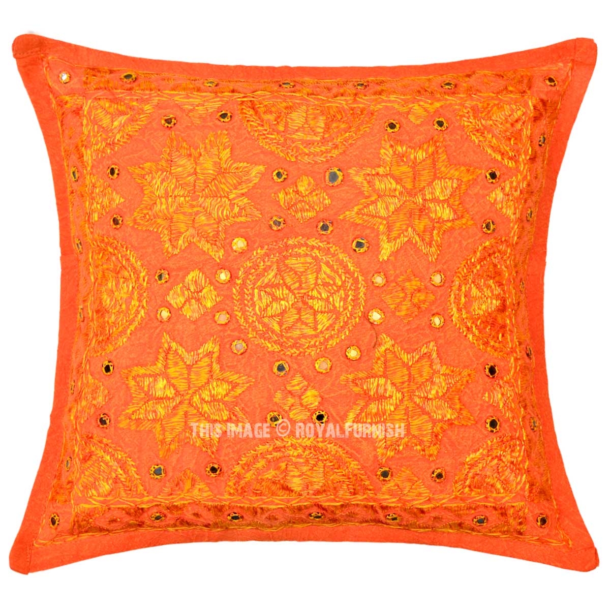 Orange Unique OneOfAKind Decorative Star Mirrored Cotton Pillow
