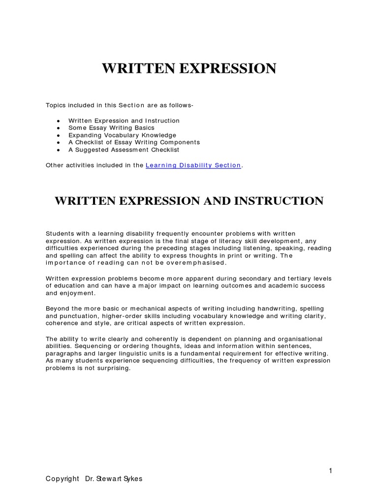 Written Expression Essays Paragraph Free 30day Trial Scribd Written Expression Recommendations It also creates difficulty with grammar and punctuation. A learning disability in written expression affects the ability to write and. In this hotsheet, we (a) define written expression, (b) explain why written expression is important, (c) provide important basic facts about written. Written expression disorder is a learning disorder that makes it hard for people to put their ideas into. Written Expression Recommendations.