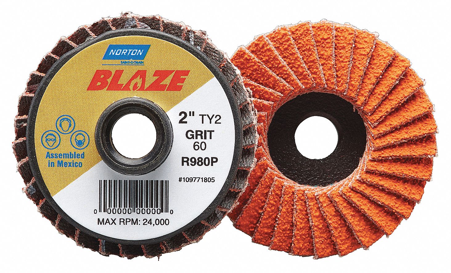 NORTON Flap Disc 40 Abrasive Grit, Coarse, Ceramic, Fiberglass