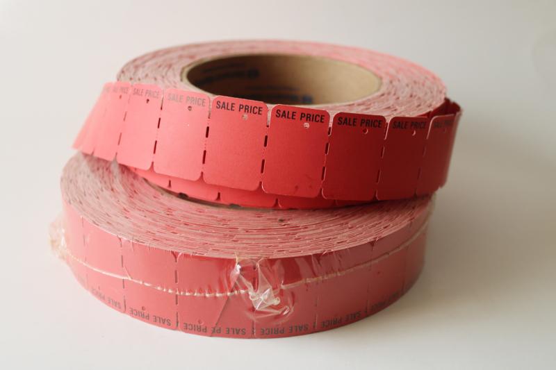new old stock vintage red paper Sale Price tags, hang tag label rolls