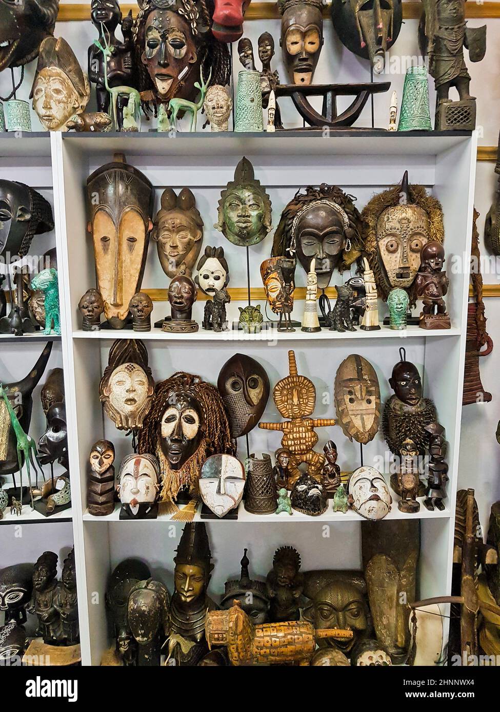 African voodoo wooden masks souvenir shop, BoKaap Cape Town Stock