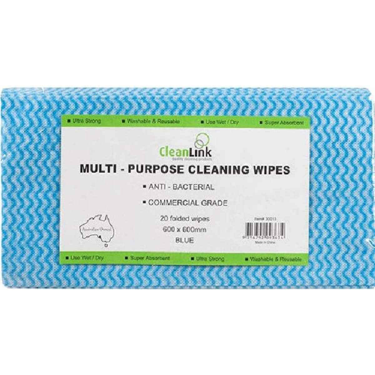 Cleanlink 10 Packs MultiPurpose Cleaning Wipes 600x600mm Blue Pack 20