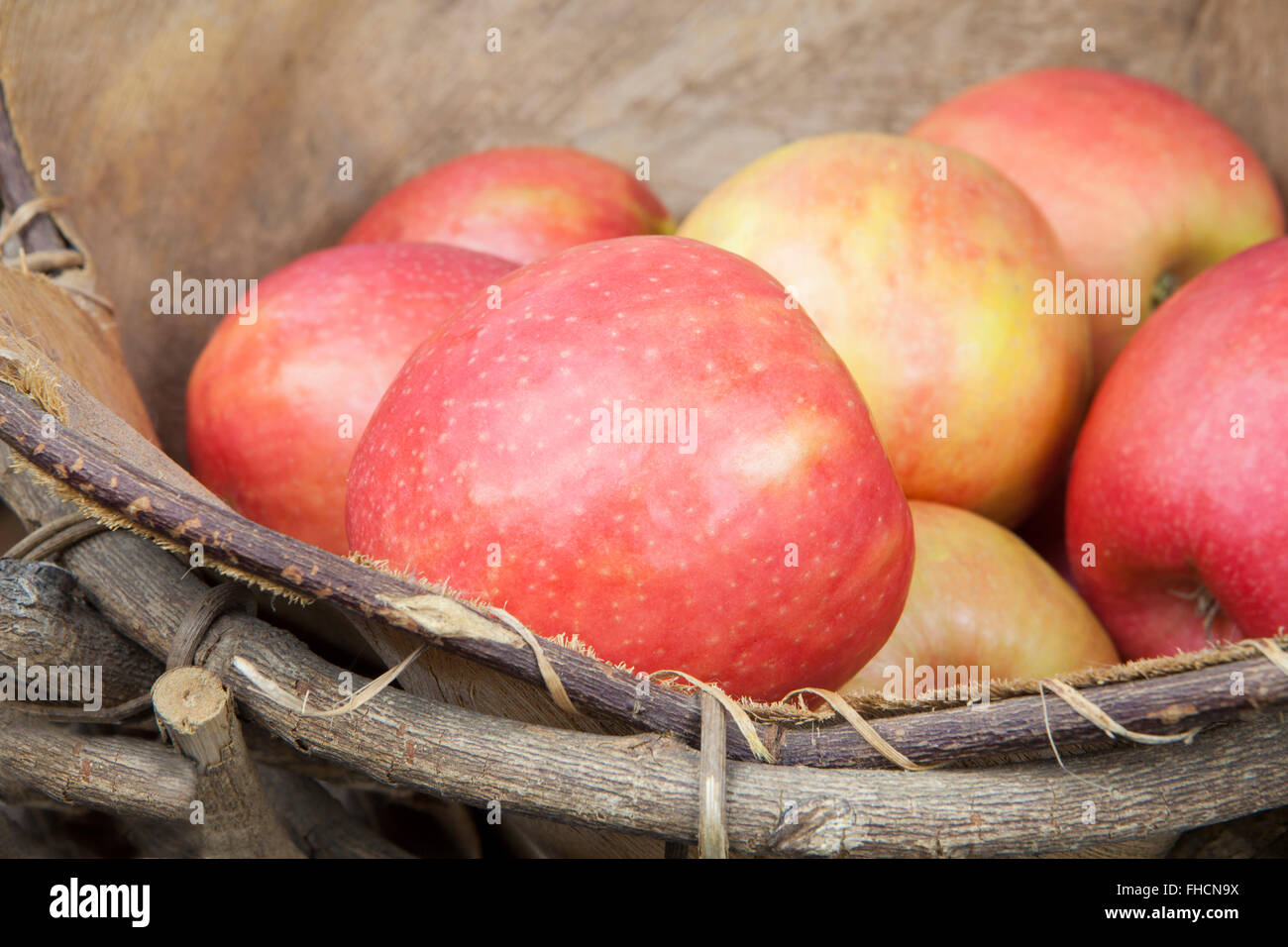 Pink lady (Cripps pink) apples in a rustic basket close up Stock Photo Alamy