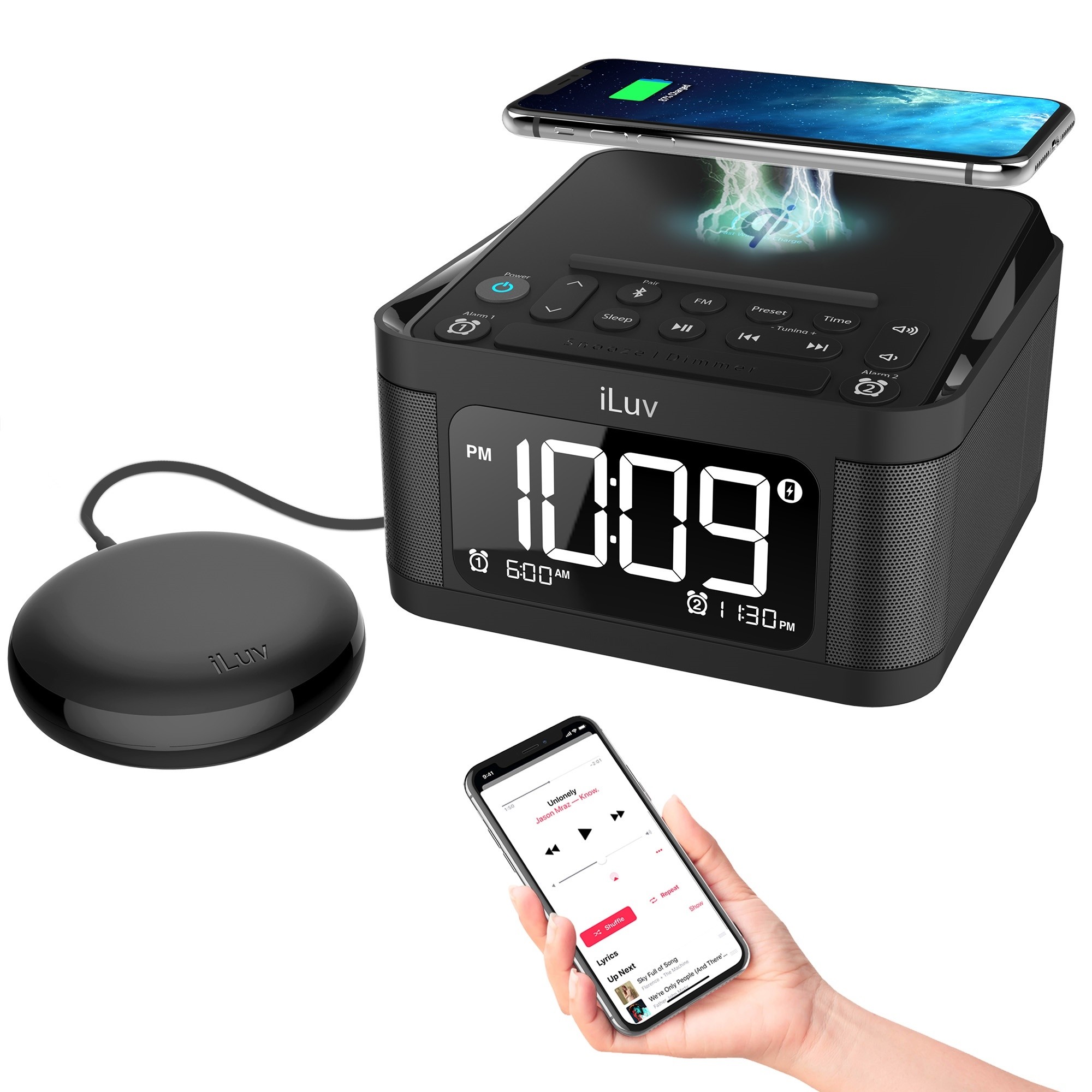 iLuv TimeShaker 6Q Wow Bluetooth Vibrating Alarm Clock Qi Charger