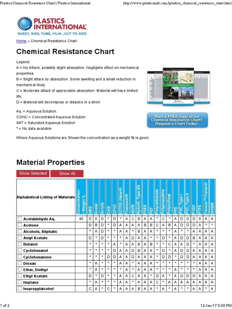 Chemical Resistance Chart For Acrylic PDF Acetic Acid Chloride Plastic Chemical Resistance Chart Pdf There are many factors which influence. thermoplastics and elastomers have outstanding resistance to a wide range of chemical reagents. if you find a chemical is not listed in table i or there are no ratings given for some of the plastic materials in. this chart gives general guidelines only on the chemical resistance of plastics. pvdf. Plastic Chemical Resistance Chart Pdf.