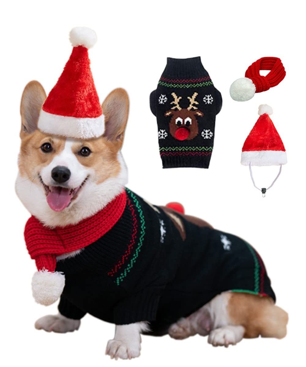 Aurueda Dog Sweater with Santa Hat and Red Scarf for Dogs, Dog