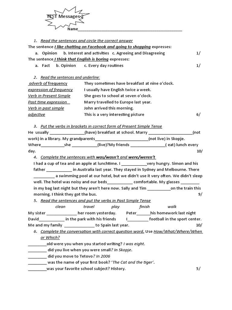 Тest 1 Module1 dhe 2 Messages 2 PDF Verb English Language