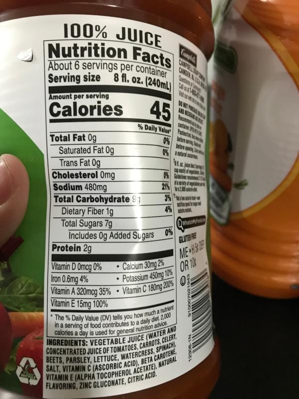 43 v8 juice nutrition facts label