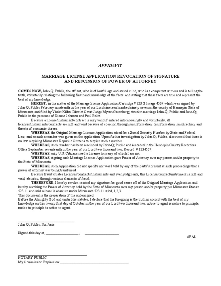 Revocation Signature Marrige License PDF Power Of Attorney Rescission