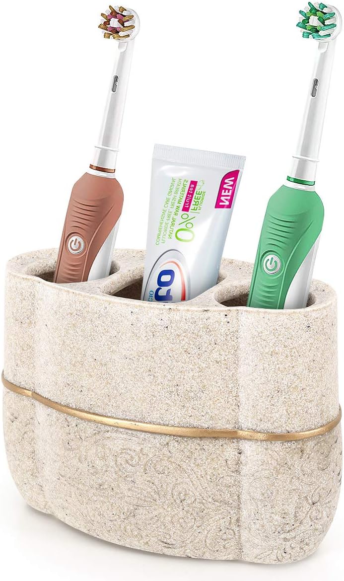 Lewondr Resin Toothbrush Holder, 3 Slots Versatile Toothbrush Storage Stand with